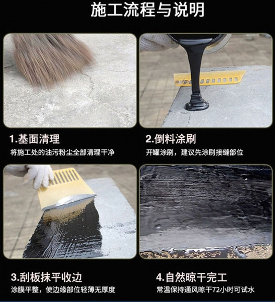 1.基面處理:施工面要求堅實、平整、 干燥無明水、無塵土、無油污,低凹破損處須填補抹平。